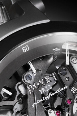 Unterscheidendes Zeichen der Marke Bovet, die Wicklung wird immer auf die Oberseite einer Kiste gelegt, die das Skelett des offensichtlichen Mechanismus, in einer Uhrart Zwickel verlassen wird.
